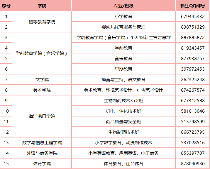 本次公布的QQ群是我校设立的唯一官方群,学校未设立2022级新生微信群。请新生和家长认准唯一群号,以学校网页、学校微信公众号“小海狮”和官方QQ群发布的消息为准,谨防上当受骗。