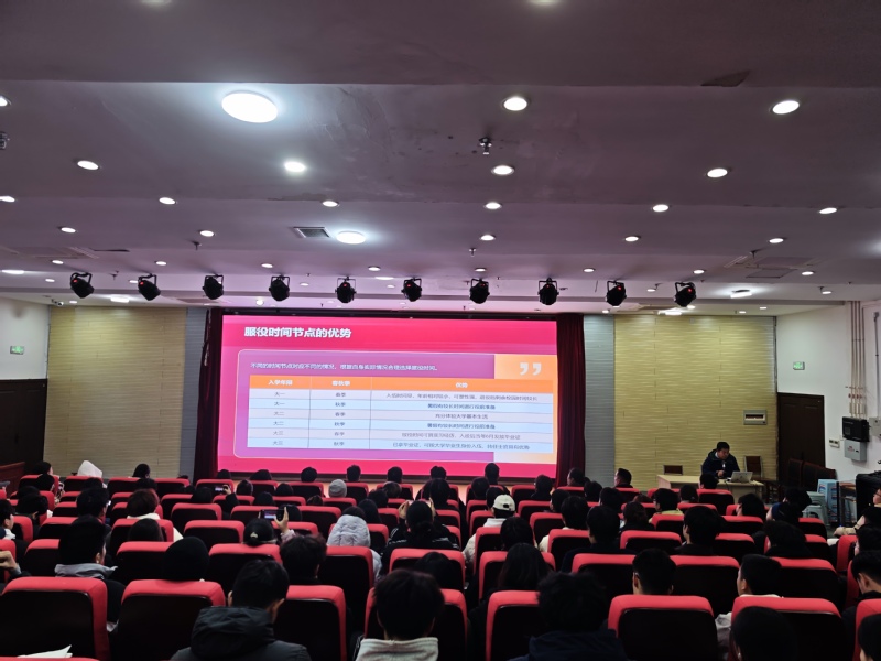 此次动员会不仅是一次政策宣讲,更是一堂生动的爱国主义教育课。现场座无虚席,气氛庄重热烈,展现出我校学子立志报国的坚定决心与昂扬斗志。武装部将持续为报名应征学生提供“一站式”服务与精准指导,助力学子圆梦军旅,在强国兴军的伟大实践中绽放青春光彩。(通讯员 张信宁)