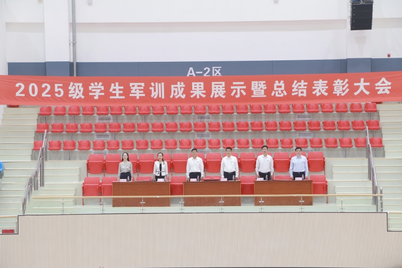 9月30日上午,我校2025级学生军训成果展示暨总结表彰大会在校体育馆举行。校党委书记杨浩出席并宣布大会正式开始,校长姚荣斌作军训总结讲话。校领导、各学院和相关部门负责人,新生班主任、辅导员和全体2025级学生参加大会。大会由校党委副书记刘长虹主持。