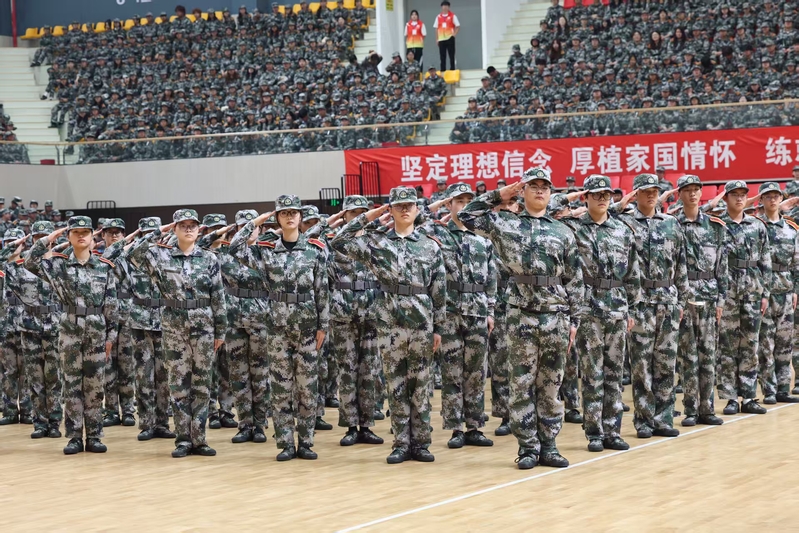大会在庄严的国歌声中拉开帷幕。姚荣斌作军训总结讲话,代表学校向承训部队表示衷心的感谢,向全体带训教师致以亲切的问候,向圆满完成军训任务的全体同学表示热烈的祝贺!向同学们提出了三点希望:一是希望同学们筑牢信仰之基,将“小我”融入“大我”。把个人的理想融入时代,把青春的力量奉献家国,庄敬自强、勤学笃行,练就过硬本领,未来在各自领域深耕不辍,努力成为强国大厦最坚实的路基、民族复兴最澎湃的浪花。二是希望同学们磨砺刚毅之志,以坚韧铸就品格。将军训淬炼的坚强意志力,真正化为未来学习与生活的行动自觉,在书山学海中忍耐寂寞、潜心钻研,在科学研究中不断探索、求是创新,在社会实践中勇于担当,主动磨砺。三是希望同学们涵养自律之风,用习惯奠基未来。找准成长坐标,以“站如松”的姿态立身处世,以“行有度”的准则待人接物,通过由外而内、由形到神的作风养成,为自己的人生坚实奠基。